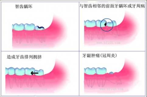 1.阻生智齿反复发作冠周炎,应该拔除。智齿冠周炎是常见疾病,好多有智齿的患者觉得自己“上火发炎”了,其实就是阻生智齿造成的。