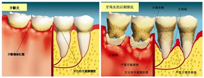 口腔卫生较差,牙龈炎的症状牙齿颈部有牙垢和牙石沉积,牙龈边缘和牙龈乳头充血,呈鲜红色或紫红色。