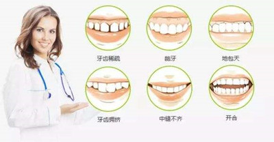 全口牙排列不齐:牙齿象“一幅桂林山水画”,凹凸不平,这是大多数人要求牙齿矫正的原因,牙齿不齐易使食物嵌塞,难于清洁,易牙龈出血、龋病,终使牙齿过早地脱落,这类牙齿比较适合做牙齿矫正。