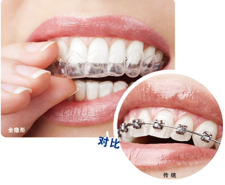 (3)隐形正畸:隐形正畸是欧洲齿科材料的巅峰之作,采用高弹性纳米材料分子,完全透明隐形,隐蔽性极好,且可以自行摘带矫正器,方便清洁,矫治疗程缩短将近三分之一的时间。