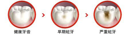 4、时间:致龋菌利用食物残渣中的养分合成破坏性物质需要一定的时间,所有这四个因素共同作用就造成了龋齿的发生。所以,预防龋齿也要从这四方面入手。龋齿发生后并不是静止不变的,一旦细菌在牙齿表面打开一个突破口,它就会迅速向牙齿深层扩展,进一步破坏牙体硬组织,进而导致牙髓炎甚至根尖周炎等疾病。